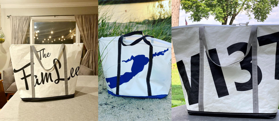 SailD3 products are made by sailors. All of our items are created with well-used sail materials, including main, jib, and spinnaker sails. The sails are uniquely repurposed for each item by hand, resulting in perfectly imperfect creations for you.