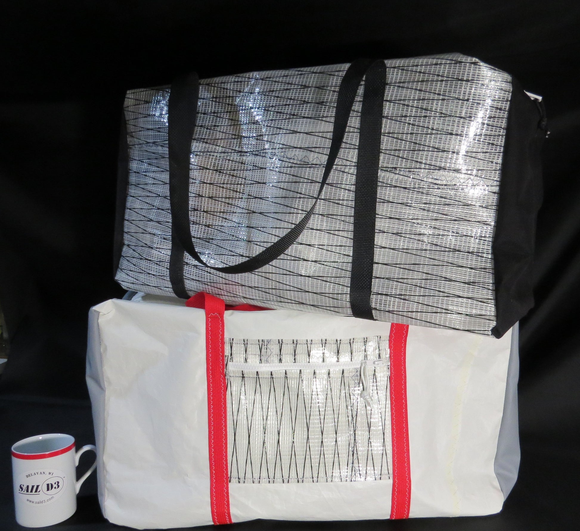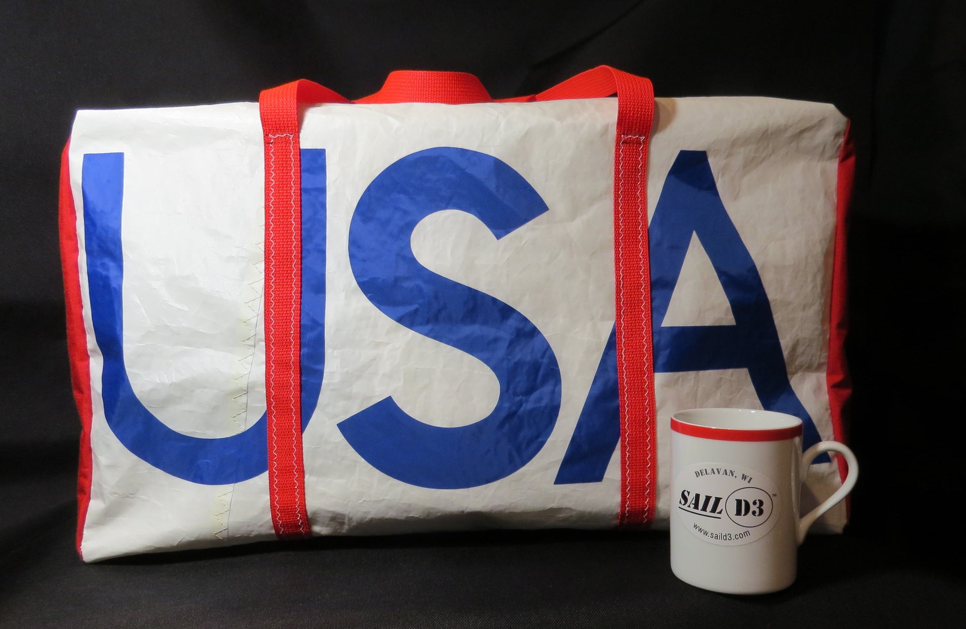 These Large Duffle Sail Bags measure 23”x13”x12” and can be customized in a variety of ways.
